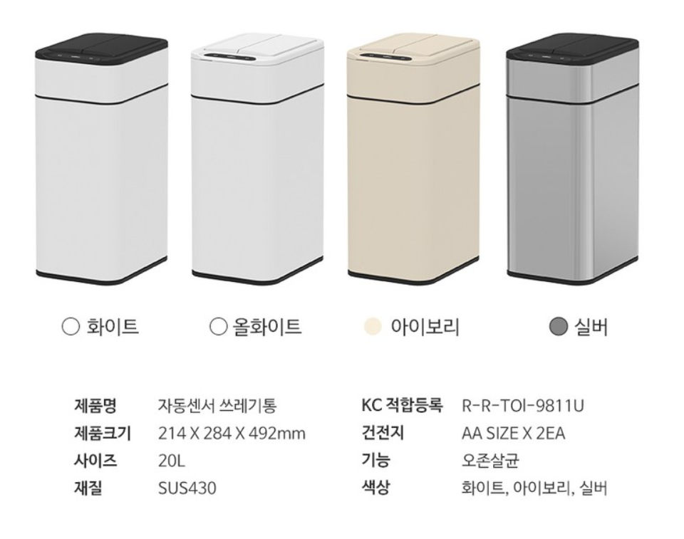 1️⃣ 스테인리스 오존살균 자동센서 기저귀 쓰레기통 20L