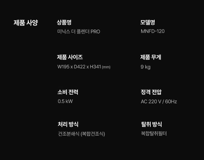 미닉스 음식물 처리기 가정용 분쇄기 건조기 더플렌더 PRO MNFD-120G : 미닉스